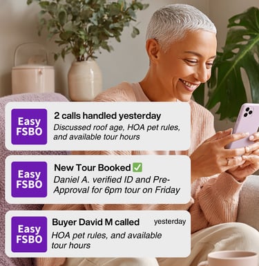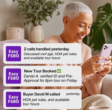 AI receptionist who knows your home inside-out. Handles all calls and texts 24/7, books tours when you want them, and filters out the spammers.